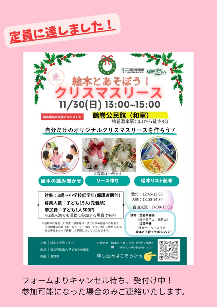 11月30日(日):絵本とあそぼう!クリスマスリース