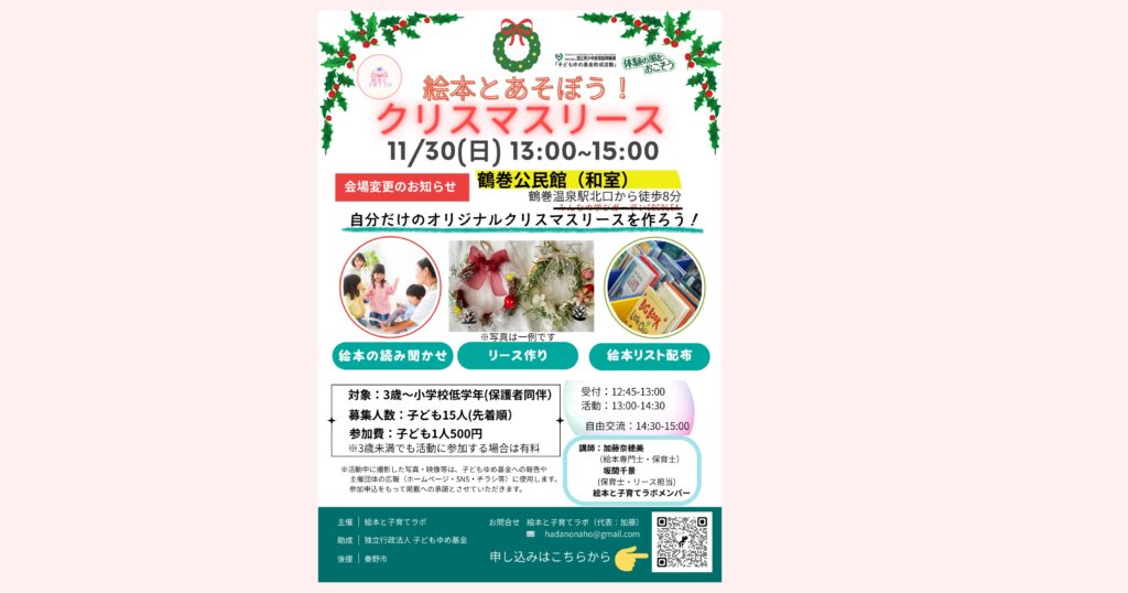 11月30日(日):絵本とあそぼう!クリスマスリース